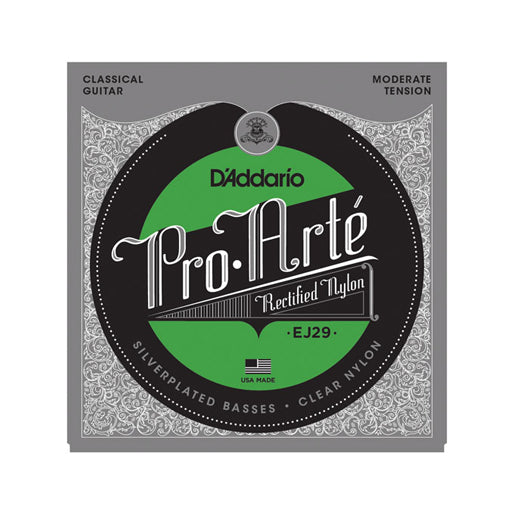 EJ29's are a moderate tension classical guitar string set containing silver on nylon wound strings and rectified clear nylon treble strings for highly accurate intonation. D'Addario Pro-Arté Rectified sets utilize our precision rectified nylon trebles - each ground using our proprietary centerless grinding technique. Roundness and dimension control are unsurpassed, ensuring absolutely perfect intonation. Classics are known for their warmer, mellower tone and slightly textured feel.