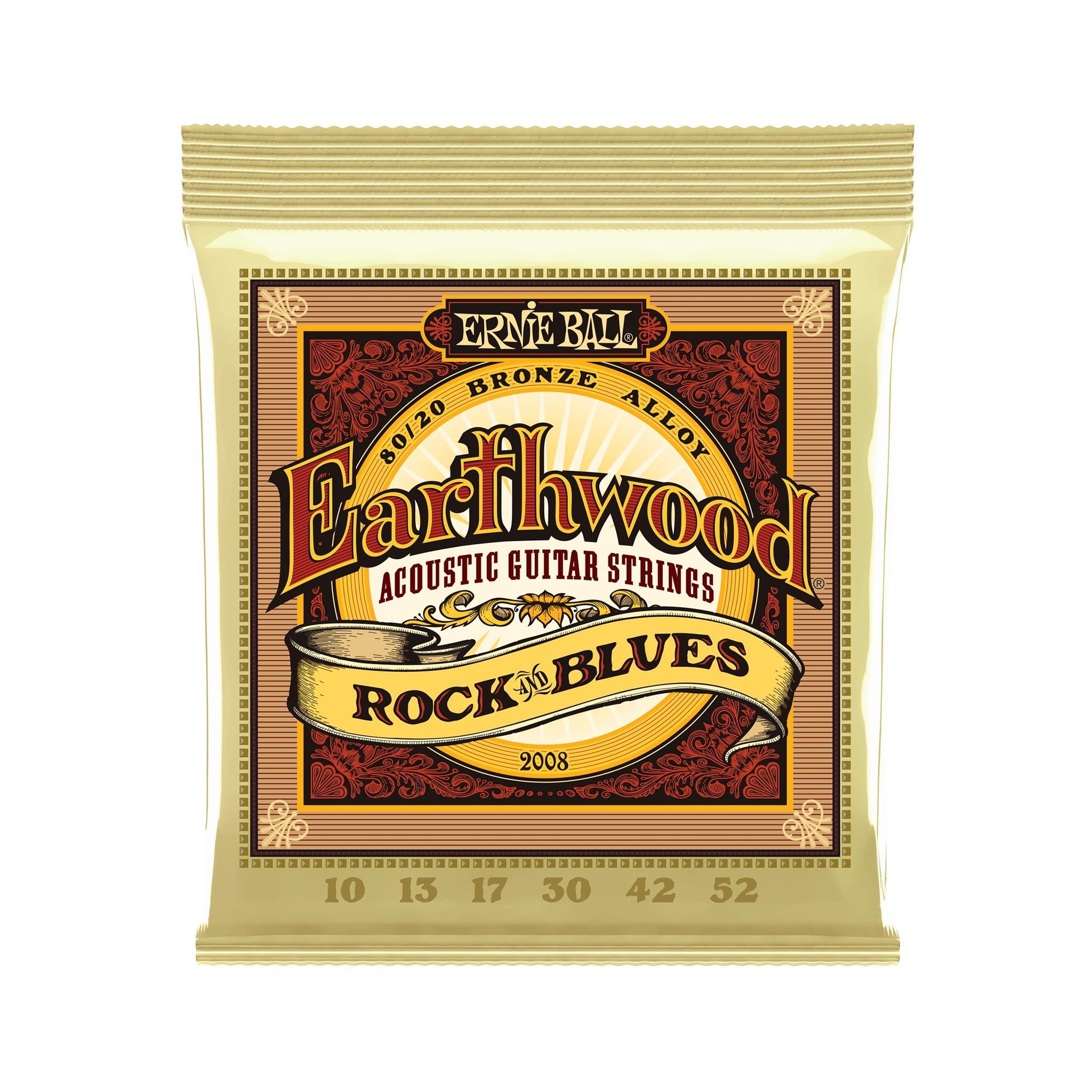 Ernie Ball Earthwood Rock and Blues w/Plain G 80/20 Bronze Acoustic Guitar Strings, 10-52