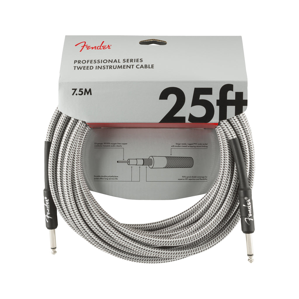 Fender Professional Series Instrument Cable, 25ft, White Tweed