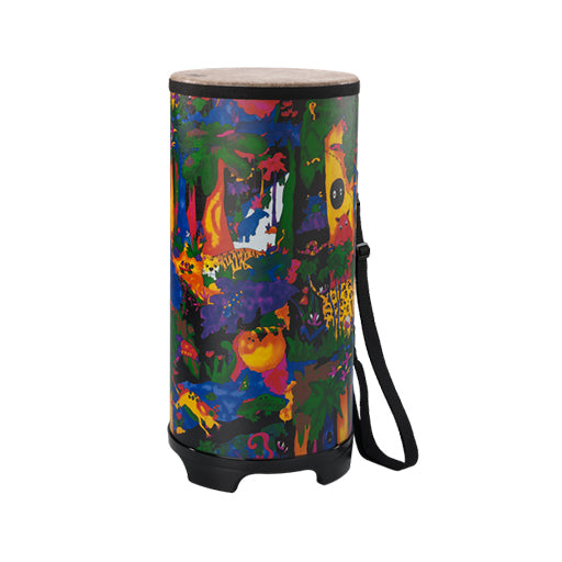 One of the world's leading names in drums and percussion is also a world leader in elementary percussion instruments specially designed for children. Perfect for playgroups, kindergartens, music schools etc, this 10" tubano drum has a 22" deep shell painted in a rain forest design, a fabric skin,and features an internal resonating tub and four molded feet. The feet lift the resonating tube off the floor to allow the full Conga-like sounds to be heard without needing to lift the drum off the floor.It can also be worn using the atached shoulder strap. Like all Remo kids percussion instruments, it is built to withstand the treatment it will inevitably receive from its intended users!