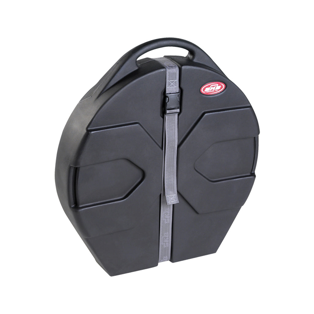 Roto moulded of Linear Low Density Polyethylene with a welded center post that will hold seven or more cymbals* this cymbal case has become the drummer's choice. Complete with four cymbal pads and a storage pocket, the cymbals will travel without pressure on the sound edge. Moulded with the "X" pattern this redesigned Cymbal Vault will stack conveniently with the SKB Roto-X Drum Cases.